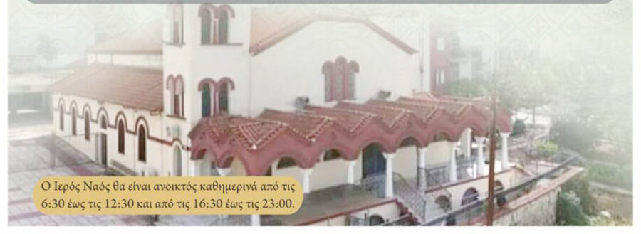 Ο Ιερός Ναός θα είναι ανοικτός καθημερινά από τις 6:30 π.μ. έως τις 12:30 μ.μ. και από τις 4:30 μ.μ. έως τις 11:00 μ.μ.