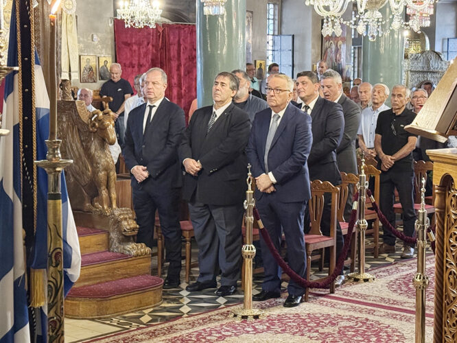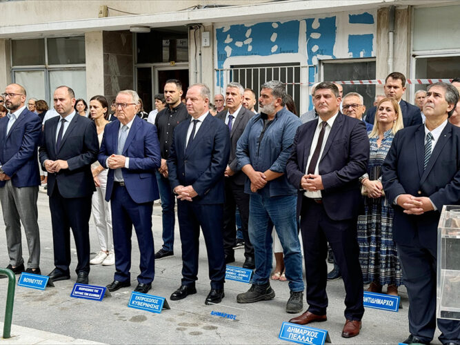 Δήμαρχο Πέλλας Στάθη Φουντουκίδη, Δήμαρχο Διστόμου- Αράχωβας- Αντίκυρας Γιάννη Σταθά, Υφ.Α.Α.Τ. Διονύση Σταμενίτη, Βουλευτές Λάκη Βασιλειάδη και Γιώργο Καρασμάνη, Αντιπεριφερειάρχη Πέλλας Ιορδάνη Τζαμτζή, Διευθυντή Αστυνομίας Πέλλας Ταξίαρχο Πέτρο Περδικάτση, Διοικητή της Πυροσβεστικής Υπηρεσίας Γιαννιτσών Αντιπύραρχο Λάζαρο Κωνσταντίνου, εκπρόσωπο της ΙΙης Μ/Κ ΜΠ, Πρόεδρο της Κοινότητας Γιαννιτσών, εκπροσώπους σωματείων, φορέων και συγγενών των θυμάτων.