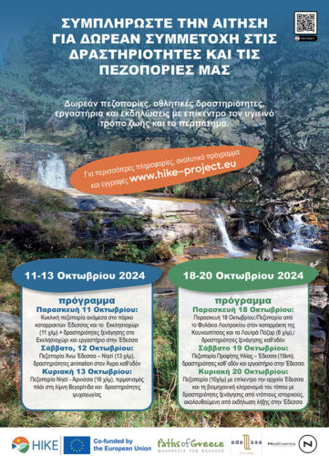 Για περισσότερες πληροφορίες, οι ενδιαφερόμενοι μπορούν να επισκεφθούν την ιστοσελίδα του προγράμματος HIKE Project – https://hike-project.eu/hikes/via-egnatia-greece/ και να δηλώσουν συμμετοχή μέσω της φόρμας εγγραφής.