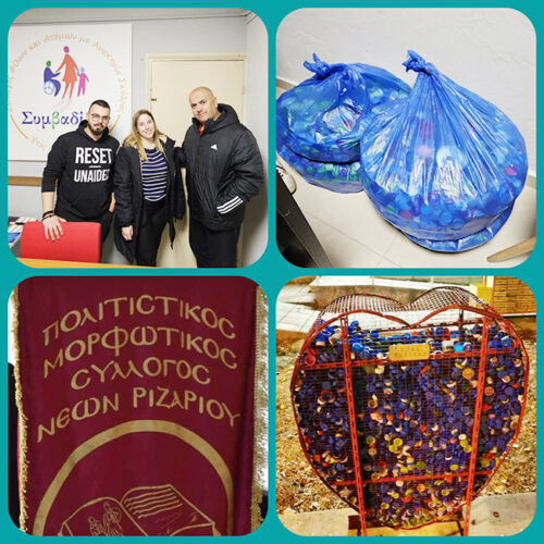 Τις προηγούμενες ημέρες εκπρόσωποι του συλλόγου έφεραν στα γραφεία μας 4 γίγας σακούλες γεμάτες καπάκια, αφού η δράση τους όπως μας μετέφεραν αγκαλιάστηκε αμέσως από τους κατοίκους της τοπικής κοινότητας.