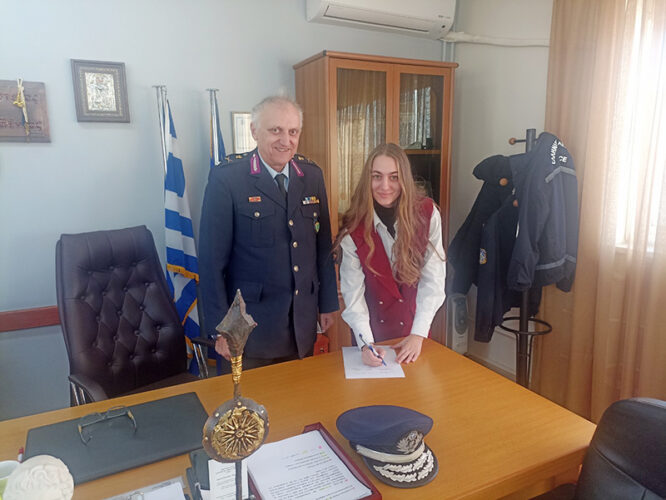 Κατά τη διάρκεια της τελετής, απευθύνθηκε σε αυτή καλωσορίζοντας την στο Σώμα και της ευχήθηκε υγεία και καλή τύχη στη σταδιοδρομία της, ο Διευθυντής της Διεύθυνσης Αστυνομίας Πέλλας, Ταξίαρχος Πέτρος Περδικάτσης.