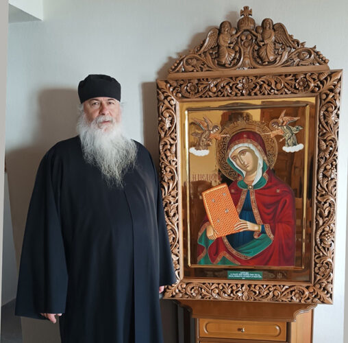 Το αντίγραφο της εικόνας ολοκληρώθηκε 5 χρόνια μετά, παραμονές των Ολυμπιακών Αγώνων του Παρισίου και παραδόθηκε στο Βυζαντινό Κέντρο Πολιτισμού «Παναγία Μελισσού» στα Τρίκαλα, στον εσπερινό του Ακαθίστου Ύμνου στις 19 Απριλίου 2024. Ο Γέροντας Γεώργιος αναφέρει: «Η μέλισσα είναι ένα μοναδικό δώρο του Θεού στον άνθρωπο, μία διαρκής ευλογία που εμείς οφείλουμε να διατηρούμε ως κόρην οφθαλμού. Πρέπει να προστατεύουμε την μέλισσα και να ακολουθούμε το παράδειγμα της ως πρότυπο της κοινωνίας του Θεού». Οφείλουμε προς δόξαν Θεού και συντασσόμενοι με το πνεύμα των Αγίων που χρησιμοποιούσαν το παράδειγμα της μέλισσας, να προβάλλουμε σήμερα σε όλο τον κόσμο την άριστη και ιδανική κοινωνία της μέλισσας για το καλό της ανθρωπότητας και το καλό όλου του κόσμου. «Εύχομαι οι μέλισσες να μας εμπνεύσουν ώστε να ξαναφτιάξουμε την εκκλησία της ενότητας και της αγάπης και να ξαναζήσουμε όπως οι πρώτοι χριστιανοί».