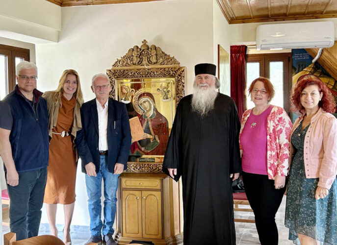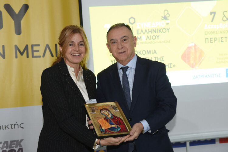 Εκπρόσωπος του Βυζαντινού Κέντρου παράδωσε αντίγραφα της εικόνας στον Υφυπουργό Αγροτικής Ανάπτυξης και Τροφίμων κ. Χρήστο Κέλλα και στον Πρόεδρο της Ομοσπονδίας Μελισσοκομικών συλλόγων Ελλάδος κ. Λεονταράκη Κωνσταντίνο.