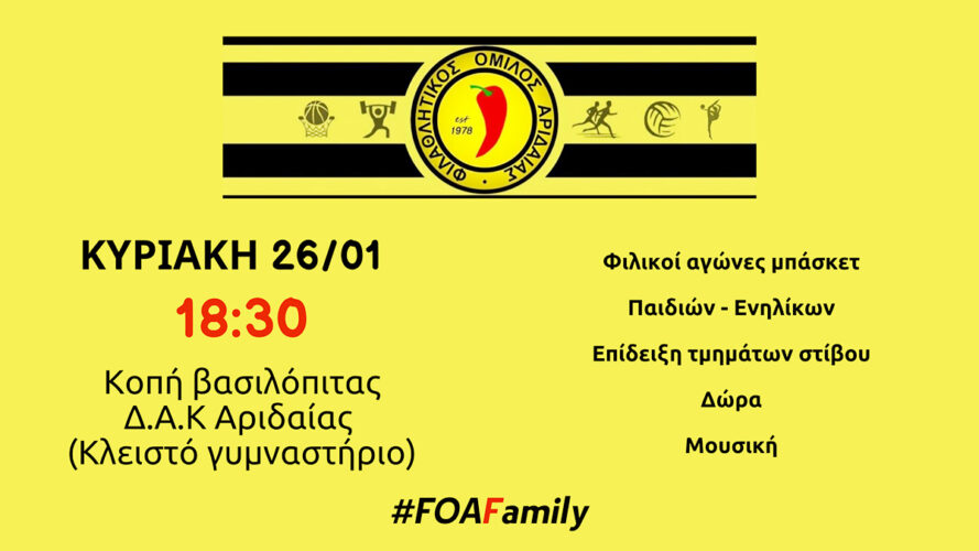 ΦΙΛΑΘΛΗΤΙΚΟΣ ΟΜΙΛΟΣ ΑΡΙΔΑΙΑΣ – ΚΟΒΕΙ ΒΑΣΙΛΟΠΙΤΑ (26/1)