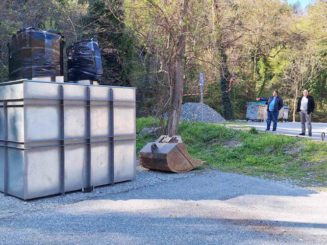 Μετά την τοποθέτηση 4 διπλών, υπόγειων κάδων στον Παλαιό Άγιο Αθανάσιο, οι οποίοι βρίσκονται σε στάδιο δοκιμαστικής λειτουργίας, σε εξέλιξη βρίσκεται η τοποθέτηση ενός διπλού υπόγειου κάδου στο Λουτράκι και δύο διπλών υπόγειων κάδων στη Λουτρόπολη Πόζαρ.