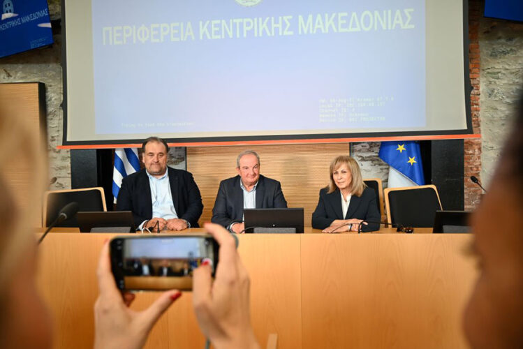 Στη συνέχεια, η Περιφερειάρχης Κεντρικής Μακεδονίας συνόδευσε τον κ. Καραμανλή στην αίθουσα συνεδριάσεων του Περιφερειακού Συμβουλίου, όπου πραγματοποιήθηκε συνάντηση με τον Πρόεδρο του Περιφερειακού Συμβουλίου, τους Αντιπεριφερειάρχες, τους Τομεάρχες και τους Περιφερειακούς Συμβούλους της «Αλληλεγγύης».