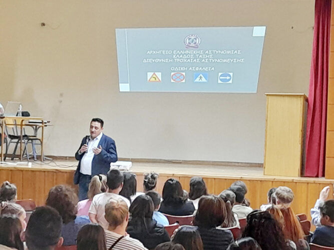 Ομιλητές ήταν οι Πέτρος Λίτσνης (Αστυνομικός Υποδιευθυντής, Διοικητής Τροχαίας Eδεσσας) και Γιαννάκης Ιωάννης (Υπαστυνόμος Β’, Διοικητής Αστυνομικού Σταθμού Βεγορίτιδας), τους οποίους και ευχαριστούμε για τις άρτιες και στοχευμένες ομιλίες τους για τα δύο αυτά σημαντικά θέματα που αφορούν το μέλλον του τόπου, τα παιδιά.