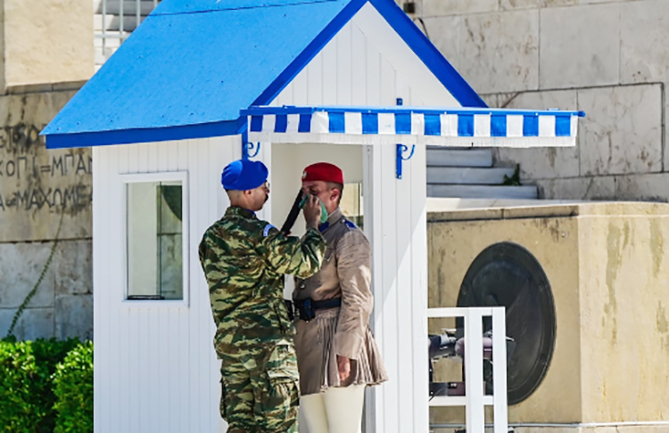 Παρά τον καύσωνα και τις θερμοκρασίες που ξεπερνούν ακόμη και τους 40 βαθμούς Κελσίου, οι εύζωνες της προεδρικής Φρουράς έμειναν πιστοί στο καθήκον.
