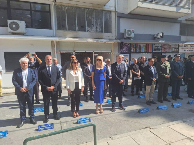 Ακολούθησε κατάθεση στεφάνων στο Μνημείο από εκπροσώπους αρχών, φορέων, σωματείων και συγγενών των θυμάτων.