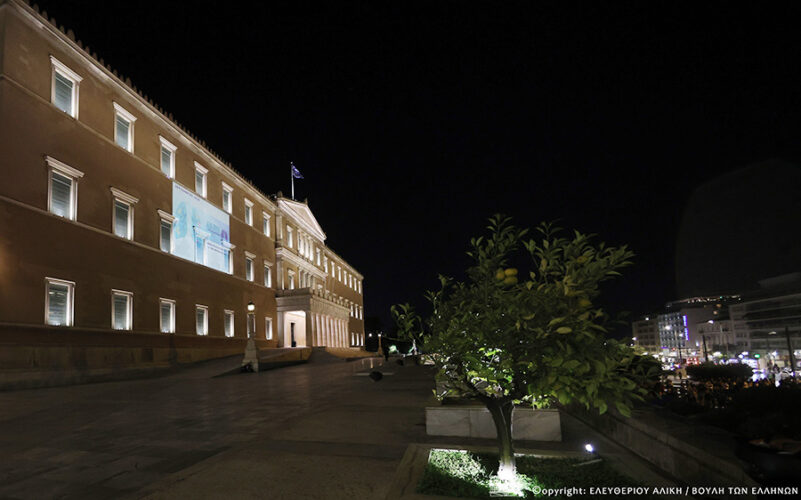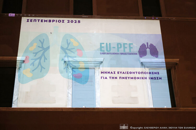 Το Κοινοβούλιο φωτίστηκε με μπλε –το διεθνές χρώμα της Πνευμονικής Ίνωσης– και πράσινο, το χρώμα του Ελληνικού Συλλόγου «Πνεύμονες Ζωής», ο οποίος συμμετέχει ενεργά στη διεθνή αυτή πρωτοβουλία.