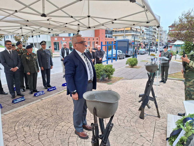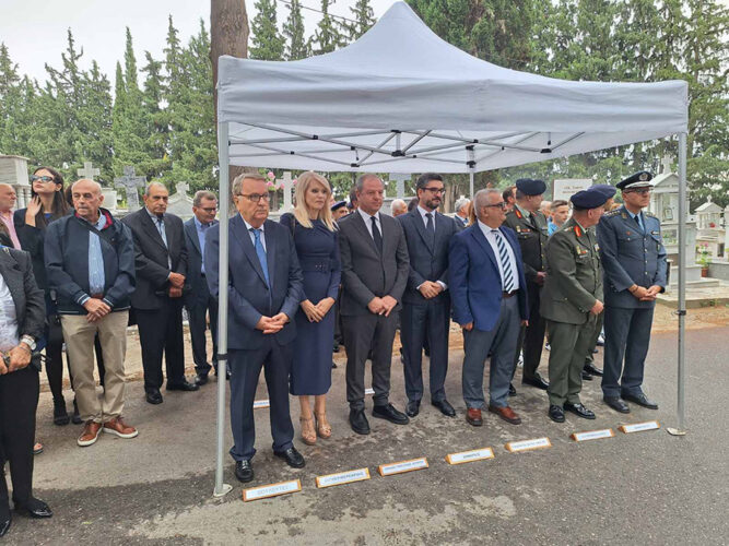 Στην τελετή, την οποία τίμησε με την παρουσία του ο Γενικός Πρόξενος της Κύπρου στη Θεσσαλονίκη Κωνσταντίνος Πολυκάρπου, τον Δήμο Πέλλας εκπροσώπησε ο Αντιδήμαρχος Τεχνικών Υπηρεσιών Κώστας Δεληγιαννίδης (ο Δήμαρχος Στάθης Φουντουκίδης απουσίαζε λόγω πένθους), ο οποίος κατέθεσε στεφάνι στο μνημείο του Ήρωα, ενώ παρέστη και κατέθεσε στεφάνι και ο Πρόεδρος της Κοινότητας Γιαννιτσών Διονύσης Παροτσίδης.