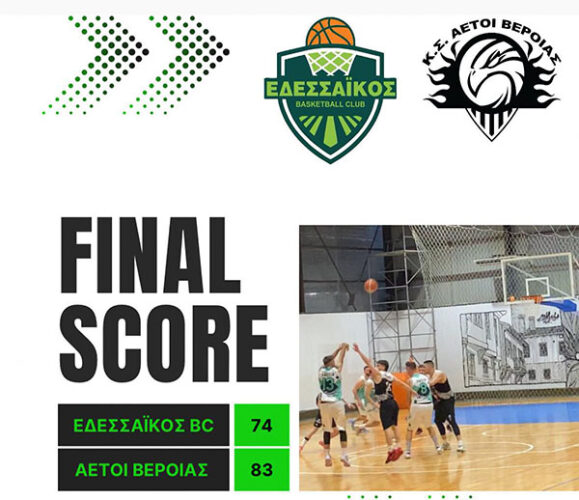 ΜΠΑΣΚΕΤ: ΗΤΤΑ ΓΙΑ ΤΟΝ EΔΕΣΣΑΪΚΟ BC ΣΤΟ ΞΕΚΙΝΗΜΑ ΑΠΟ ΤΟΥΣ ΑΕΤΟΥΣ ΒΕΡΟΙΑΣ 74-83