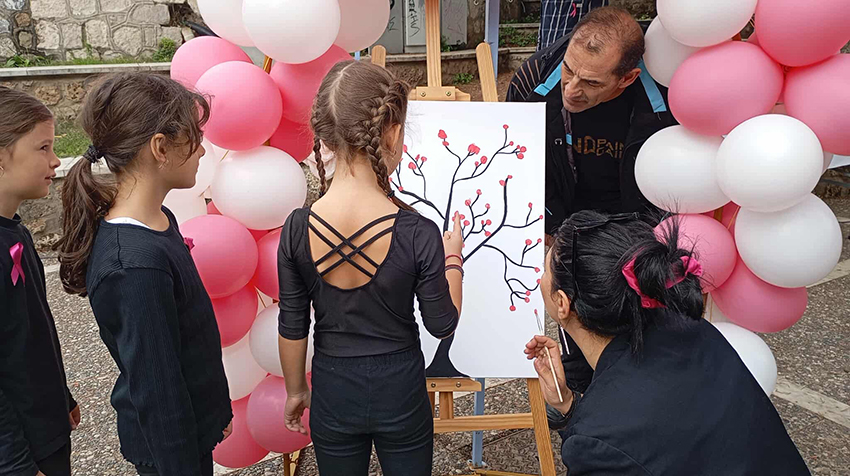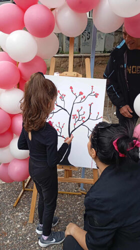 Η συμμετοχή δε των εθελοντών του Συλλόγου Καρκινοπαθών Εδεσσας και Περιχώρων, για άλλη μια φορά, προκάλεσε ιδιαίτερη συγκίνηση. Μάλιστα, παρέα με τα παιδιά ζωγράφισαν ένα “Δέντρο της Ελπίδας”, στέλνοντας ένα πολύχρωμο μήνυμα ζωής, πίστης και δύναμης σε όσους και όσες αγωνίζονται απέναντι στον καρκίνο του μαστού!