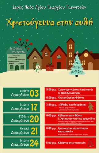 🎄 Το Πνευματικό Κέντρο του Ιερού Ναού Αγίου Γεωργίου Γιαννιτσών σας προσκαλεί στις Χριστουγεννιάτικες δράσεις που διοργανώνει για μικρούς και μεγάλους!