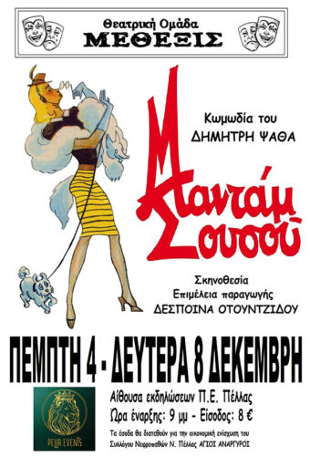 Η ΜΑΝΤΑΜ ΣΟΥΣΟΥ ΑΝΕΒΑΙΝΕΙ ΣΤΗ ΣΚΗΝΗ ΤΗΣ ΕΔΕΣΣΑΣ ΑΠΟ ΤΗ ΘΕΑΤΡΙΚΗ ΟΜΑΔΑ “ΜΕΘΕΞΙΣ” – ΠΑΡΑΣΤΑΣΕΙΣ ΓΙΑ ΚΑΛΟ ΣΚΟΠΟ!