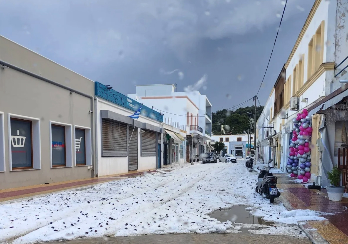 Μέσα σε λίγα λεπτά, δρόμοι και σπίτια στη Λέρο καλύφθηκαν από στρώμα χαλαζιού, με αποτέλεσμα η κυκλοφορία των αυτοκινήτων να δυσκολέψει σε αρκετά σημεία. Το φαινόμενο σόκαρε κατοίκους και οδηγούς, αφού τέτοιο φαινόμενο έχει να εμφανιστεί πολλά χρόνια.
