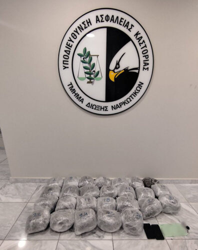 Αναλυτικότερα, στο πλαίσιο στοχευμένων δράσεων για την καταπολέμηση της εισαγωγής και διακίνησης ναρκωτικών ουσιών στη χώρα και κατόπιν κατάλληλης αξιοποίησης στοιχείων, χθες το πρωί εντοπίστηκε από προαναφερόμενους αστυνομικούς Ι.Χ.Ε. αυτοκίνητο, με οδηγό την 19χρονη και συνοδηγό τον 20χρονο, σε περιοχή της Καστοριάς και σε έλεγχο που πραγματοποιήθηκε διαπιστώθηκε ότι, μετέφεραν από κοινού -3- ταξιδιωτικούς σάκους που περιείχαν -26- συσκευασίες με ακατέργαστη κάνναβη, συνολικού μεικτού βάρους -28- κιλών και -100- γραμμαρίων.