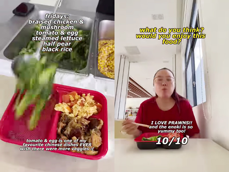 Τα γεύματα δίνονταν σε μερίδες που σερβίρονταν σε μεταλλικούς δίσκους. Η Egg Eats δημοσίευσε ένα βίντεο από το πρωινό της στο οποίο φαίνεται πως της έδωσαν βραστά αυγά και λαχανικά ενώ το μεσημέρι και το βράδυ τα γεύματα ήταν με λαχανικά, κρέας και ρύζι. Τα γεύματα έχουν σχεδιαστεί ώστε να προσομοιάζουν την καθημερινή κινέζικη διατροφή, έτσι ώστε όταν οι συμμετέχοντες βγουν από το πρόγραμμα να μην καταφύγουν σε υπερβολική κατανάλωση τροφής. Ταυτόχρονα επιτρέπεται η δεύτερη μερίδα, αλλά απαγορεύεται το τσιμπολόγημα.