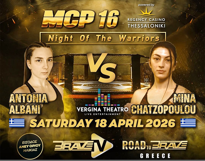 Το Σάββατο 18 Απριλίου, η αθλήτρια του ΑΣ ΑΤΡΟΜΗΤΟΥ Γιαννιτσών, Αντωνία Αλμπάνη, μπαίνει στο κλουβί της διοργάνωσης MCP 16, σε μια αναμέτρηση υψηλών απαιτήσεων.