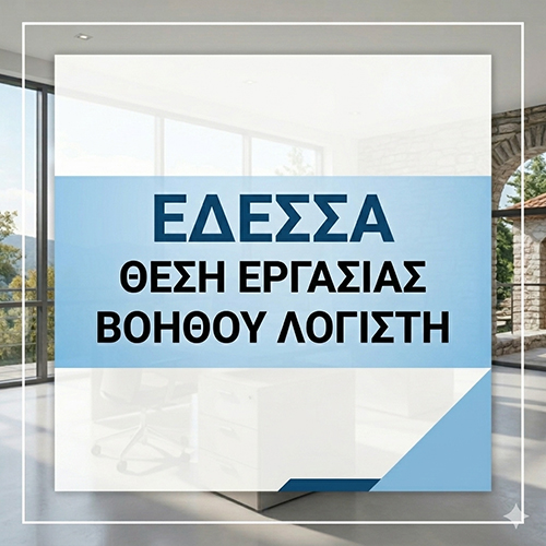ΕΔΕΣΣΑ – ΘΕΣΗ ΕΡΓΑΣΙΑΣ ΒΟΗΘΟΥ ΛΟΓΙΣΤΗ