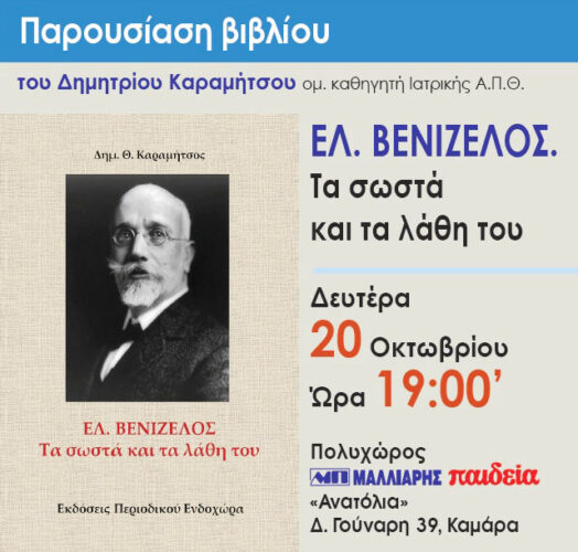 ΘΕΣΣΑΛΟΝΙΚΗ: ΠΑΡΟΥΣΙΑΣΗ ΤΟΥ ΒΙΒΛΙΟΥ “ΕΛ. ΒΕΝΙΖΕΛΟΣ. ΤΑ ΣΩΣΤΑ ΚΑΙ ΤΑ ΛΑΘΗ ΤΟΥ”, ΤΟΥ ΔΗΜΗΤΡΙΟΥ ΚΑΡΑΜΗΤΣΟΥ (20/10)